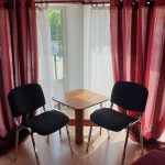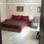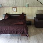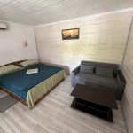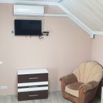 Etajul doi — dormitor (2 persoane) și fotoliu care se extinde, TV, aer condiționat. Etajul unu — canapea pentru două persoane, frigider, aer condiționat, baie, WC, măsuță. Afară terasă pentru 6 persoane cu grătar și plasă pe grătar. Copii până la 5 ani gratis (nu necesită loc de dormit).
