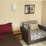 În fiecare camera: dormitor (2 persoane), fotoliu care se extinde, fotoliu confortabil, măsuță, aer condiționat, TV, frigider. Baie, WC. Afară terasa pentru 6 persoane, grătar, plasa pe grătar.