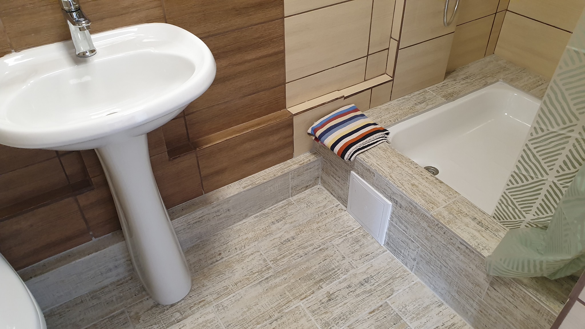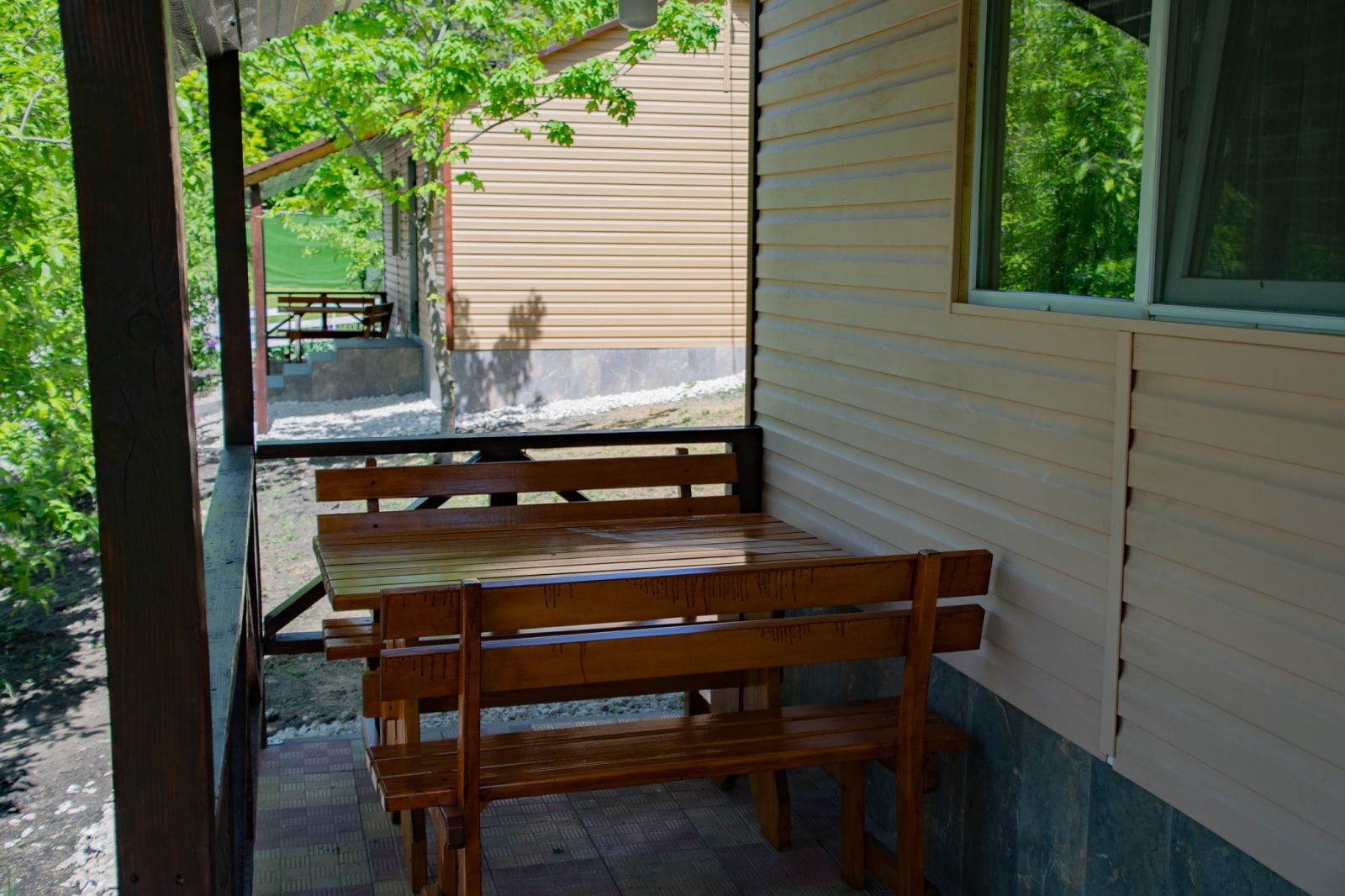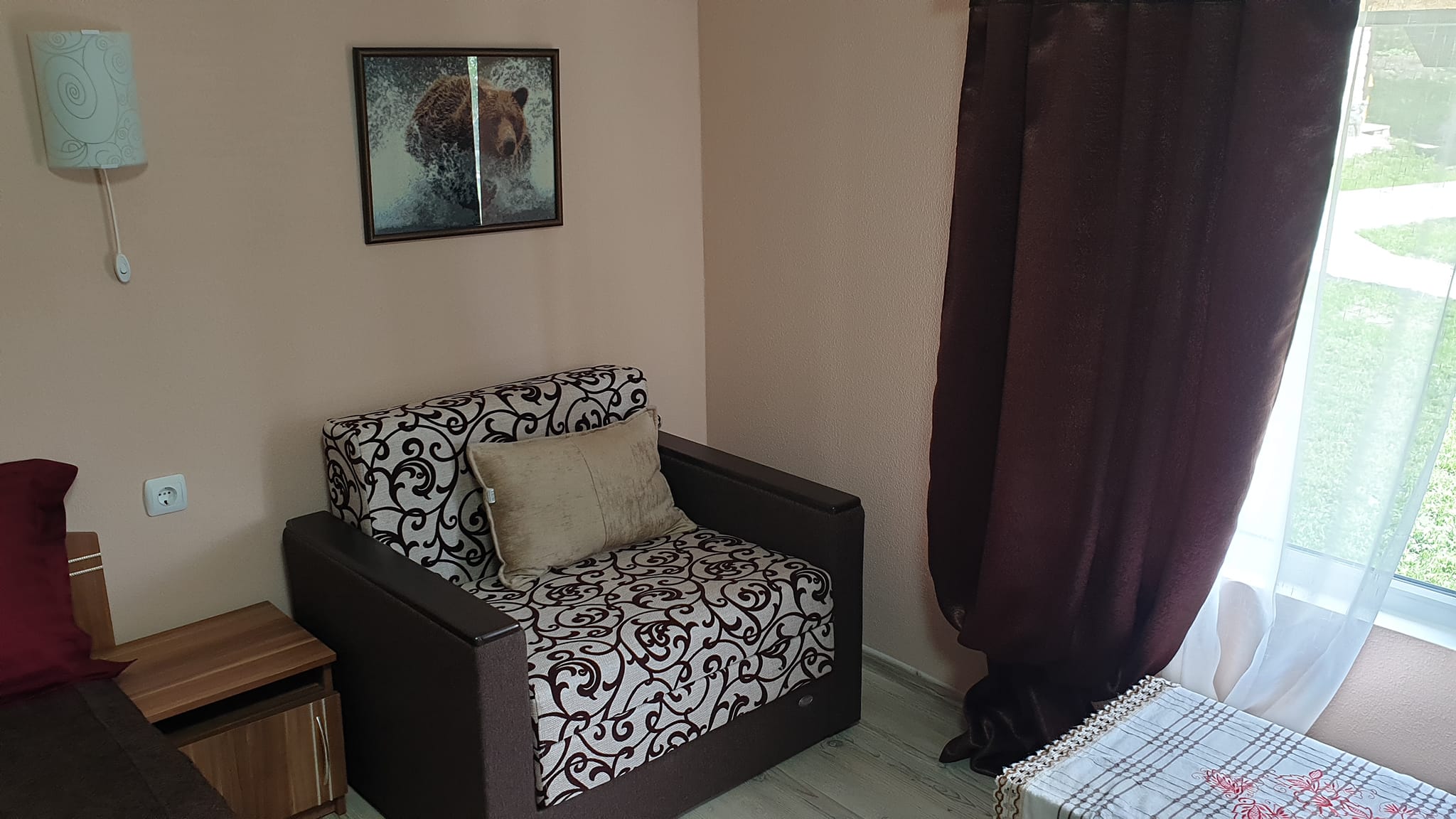 În fiecare camera: dormitor (2 persoane), fotoliu care se extinde, fotoliu confortabil, măsuță, aer condiționat, TV, frigider. Baie, WC. Afară terasa pentru 6 persoane, grătar, plasa pe grătar.