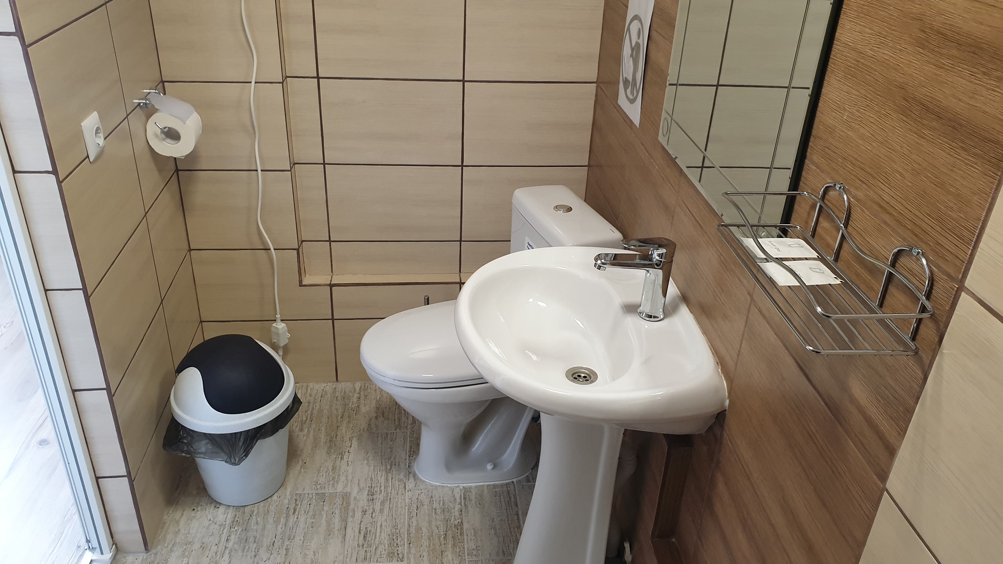 frigider, aer condiționat, TV, duș cu apă rece/caldă, WC.