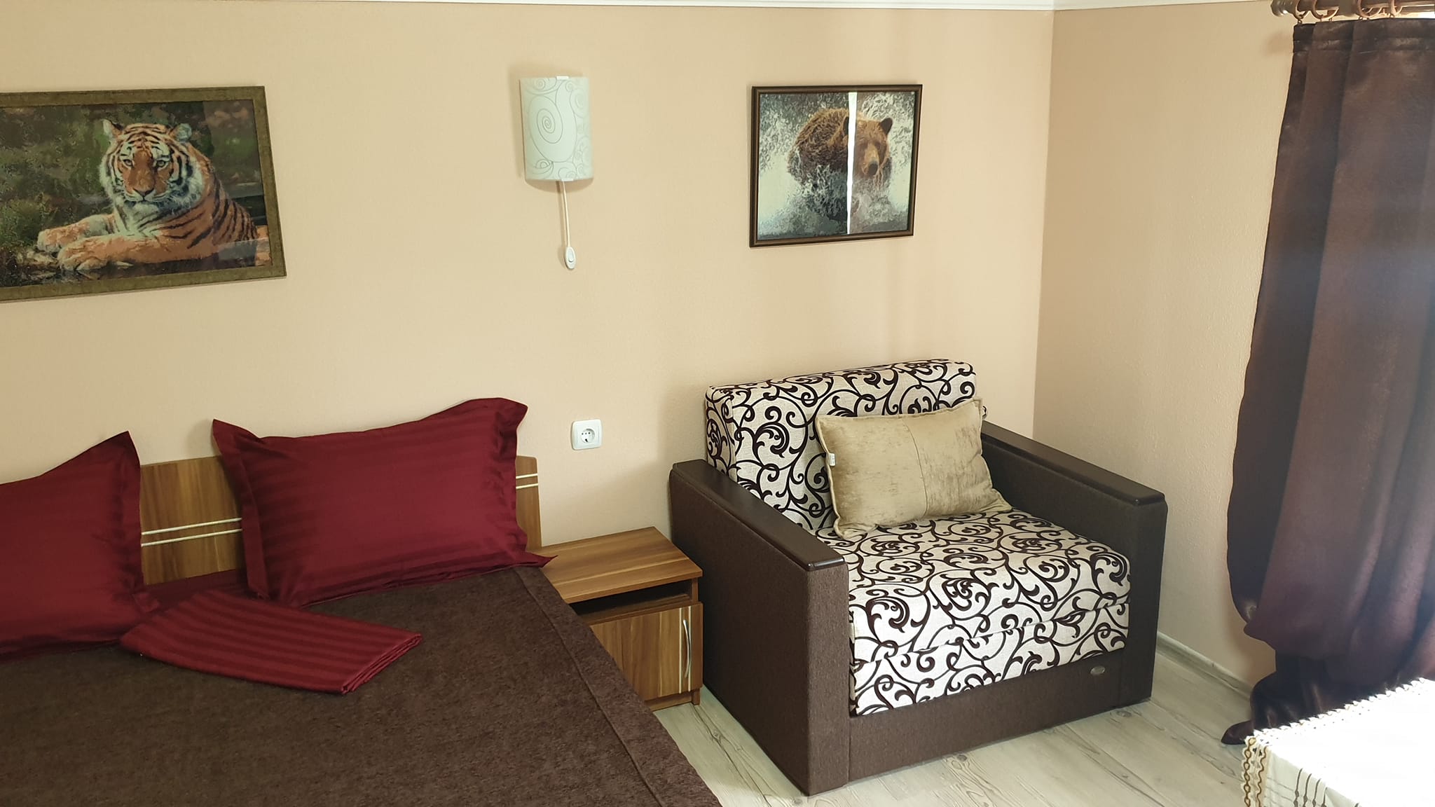 Casă cu o odaie, pentru 3 persoane. Dormitor, antreu, trimou,